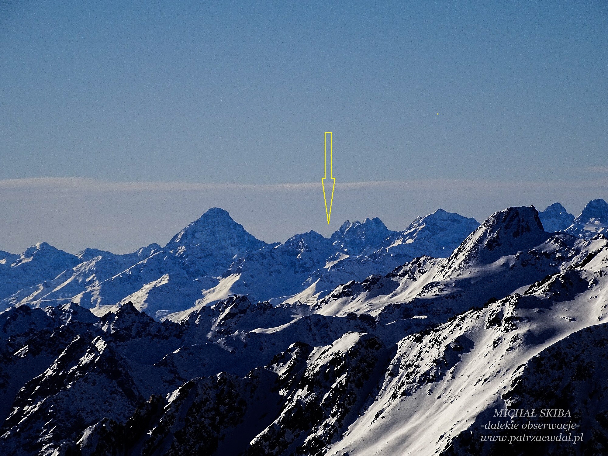W kierunku zachodnim gdzie azymut wyznacza pasmo Gór Silvretta oraz majestatycznego Piz Linard udało się dotrzec południowe zbocza Finsteraarhornu bagatela 213 km. Jest to najdalszy możliwy do zobaczenia punkt z Hintererbrunnenkogel (dla porównania Tarnica ma potencjał 258 km :)) no ale cieszymy się z tego co mamy.